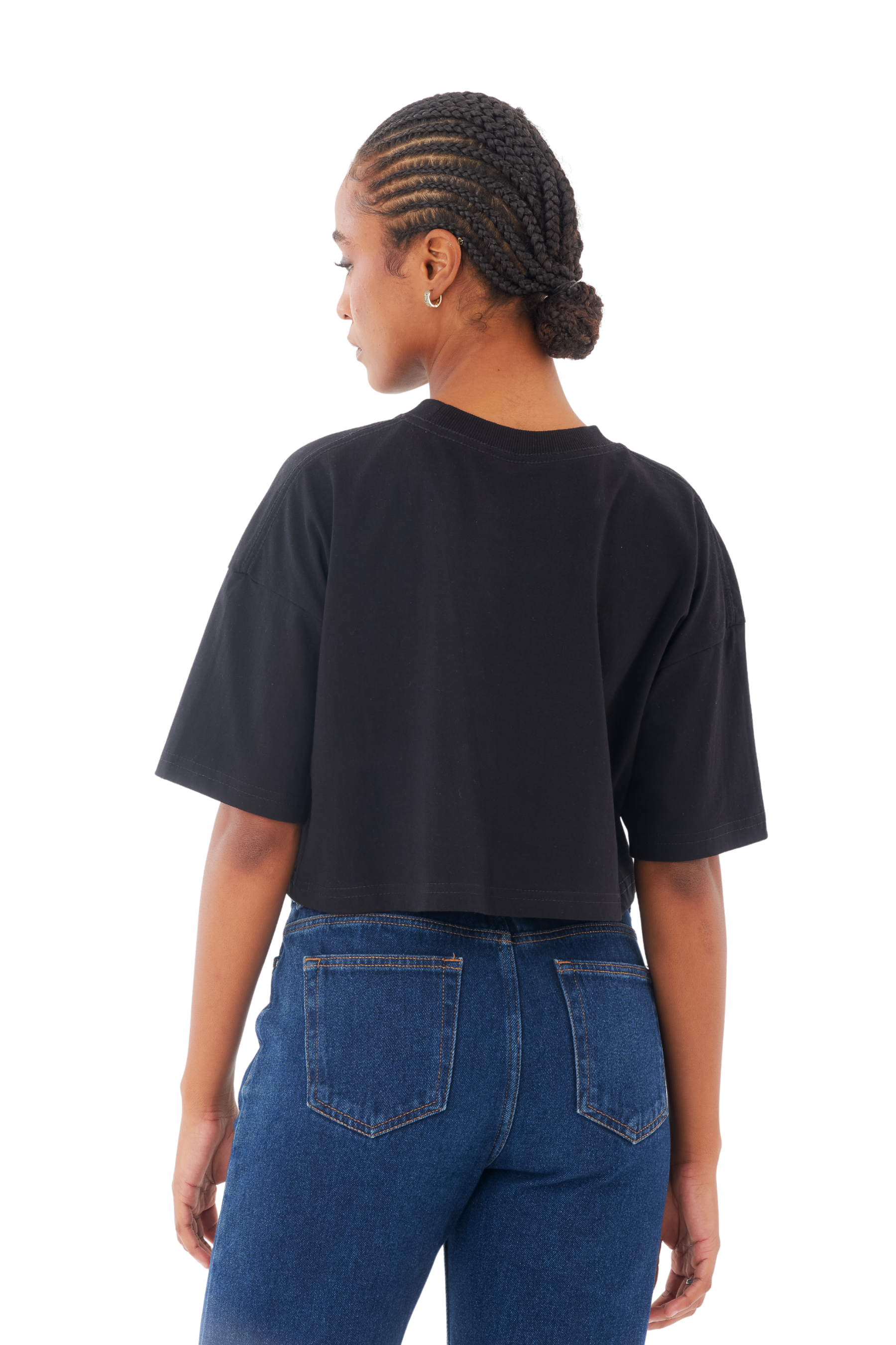 Cropped Preto Oversized com Estampa em Serigrafia.