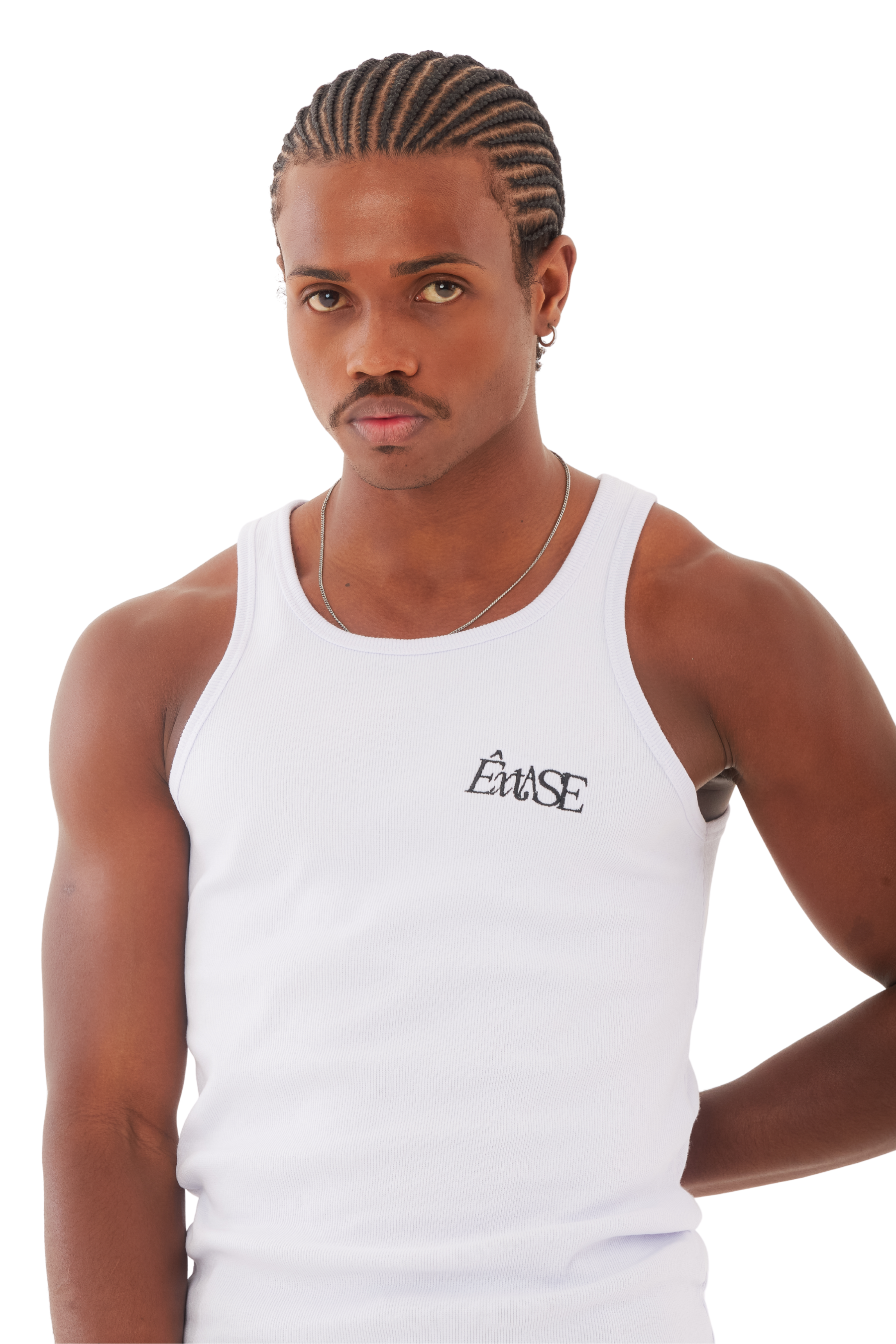 Regata Canelada Branca com Bordado.